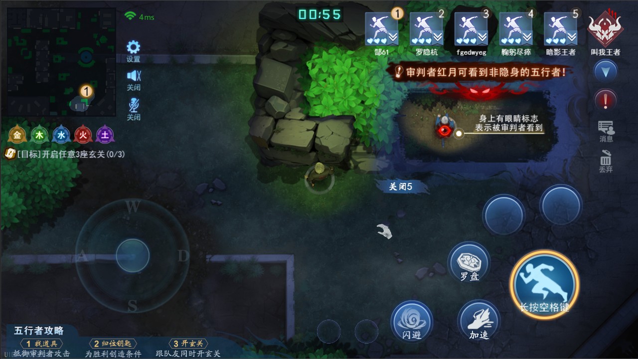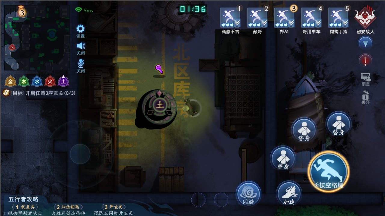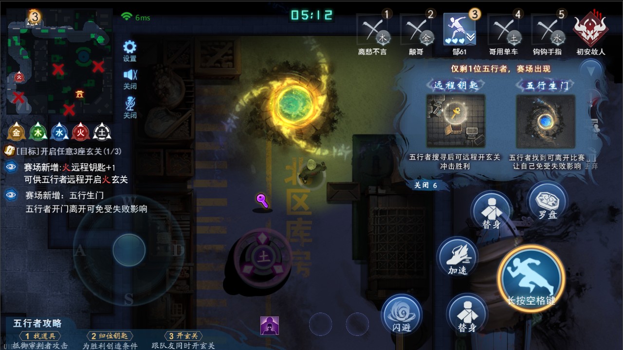 ②只剩1名五行者时,将开启生门逃生机制,抓住时机,速逃!