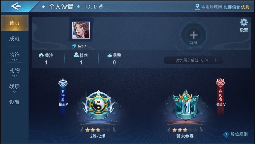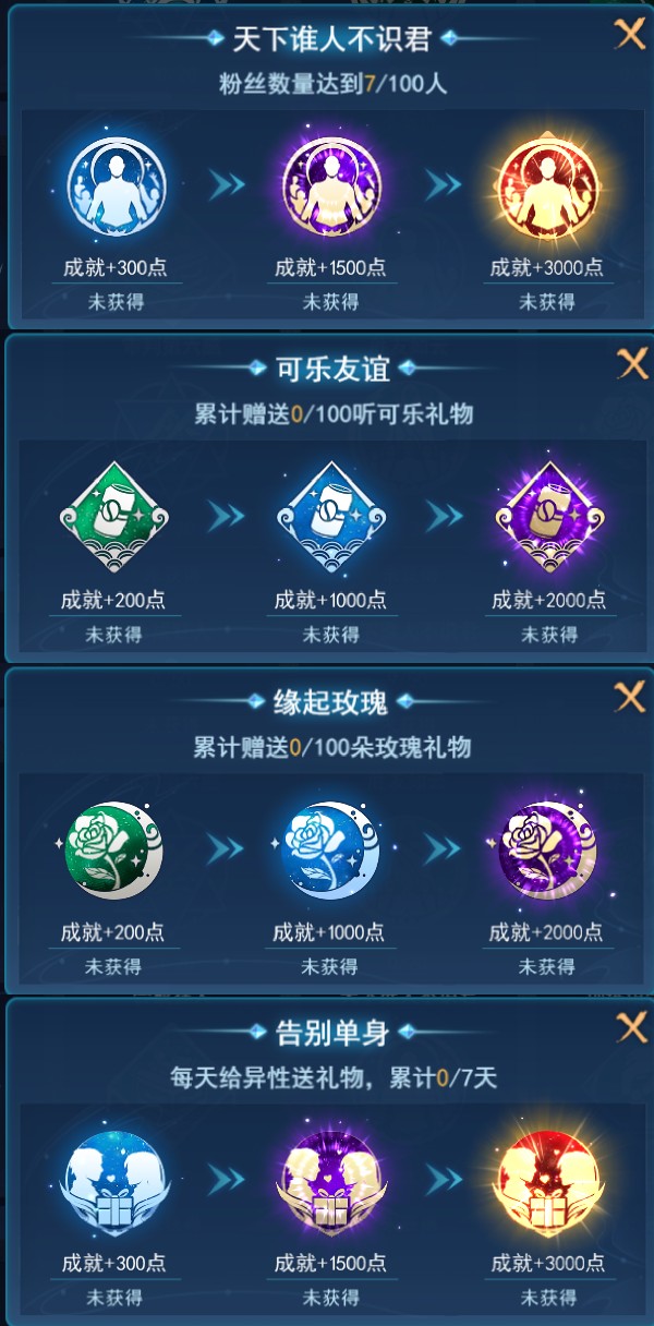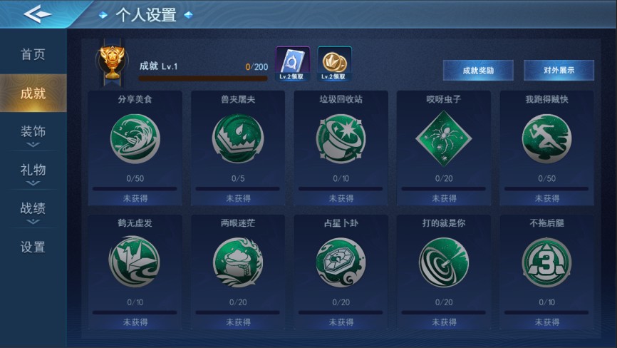 (在游戏主界面点击左上角<头像>,打开个人设置界面,点击分页的<成就>)