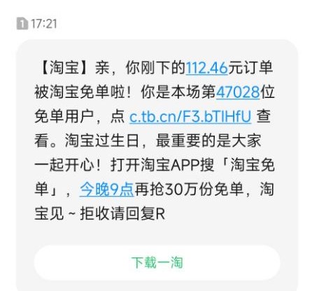 1、如果中奖了,是会在淘宝绑定的手机号里面收到短信的。